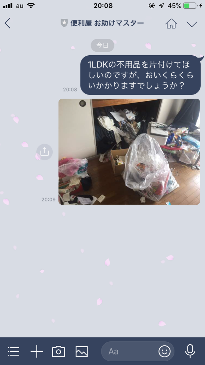 便利屋お助けマスター東京足立店ではお気軽にご相談いただけるようにラインからのお問い合わせも受け付けております。「電話はちょっと…」という場合でもお気軽にご相談ください。また、写真を添付していただくことで概算のお見積を提出することも可能です。